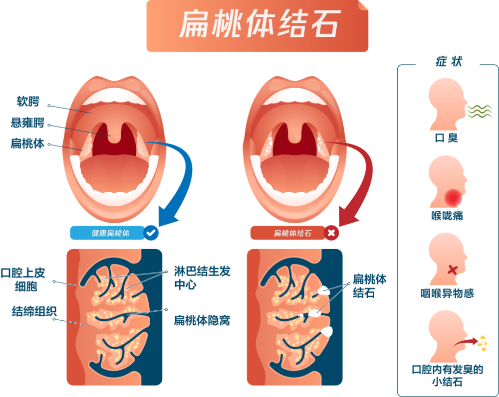 虽然,看上去扁桃体结石带来的问题不算大,但它引起的口臭、咽喉异物感也很影响生活。