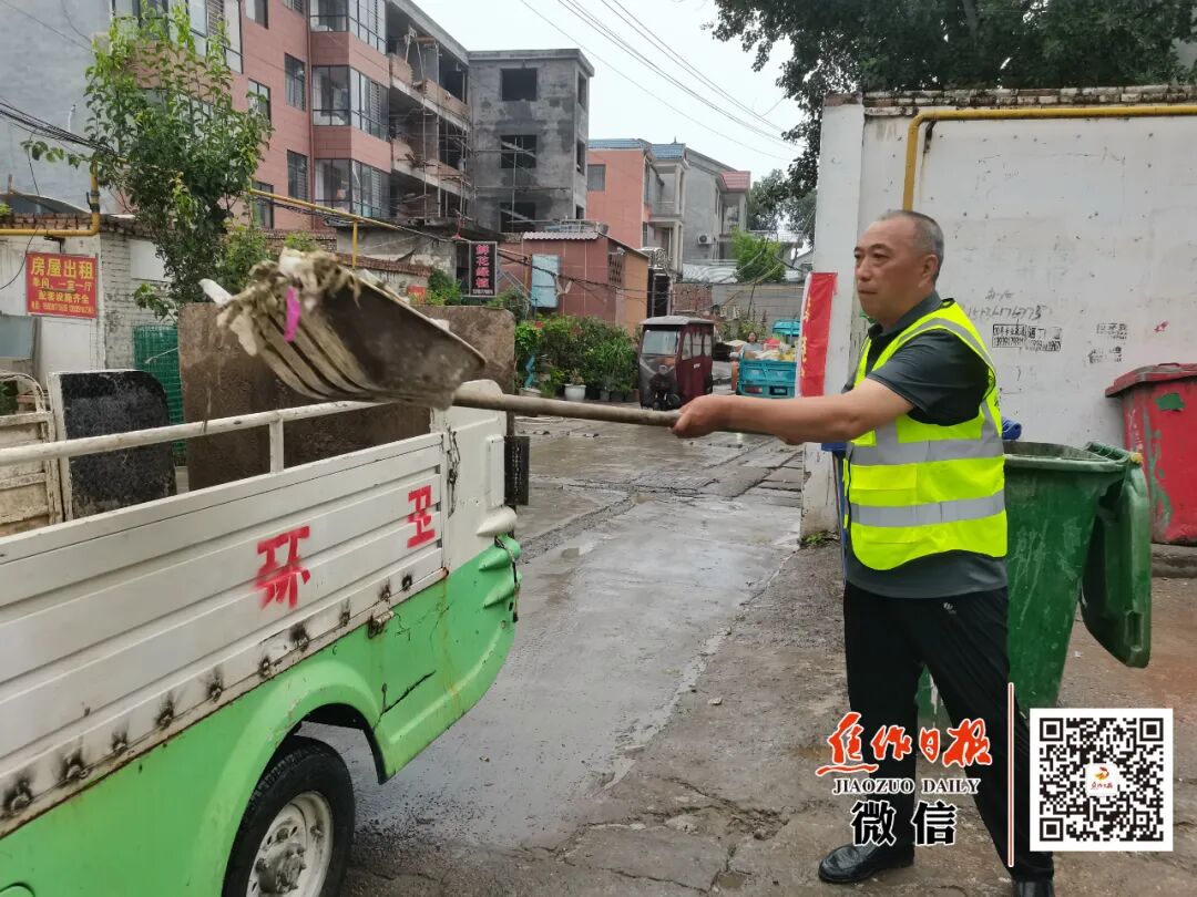 张建军在高温下清运垃圾。焦作日报全媒体通讯员 千建设 摄