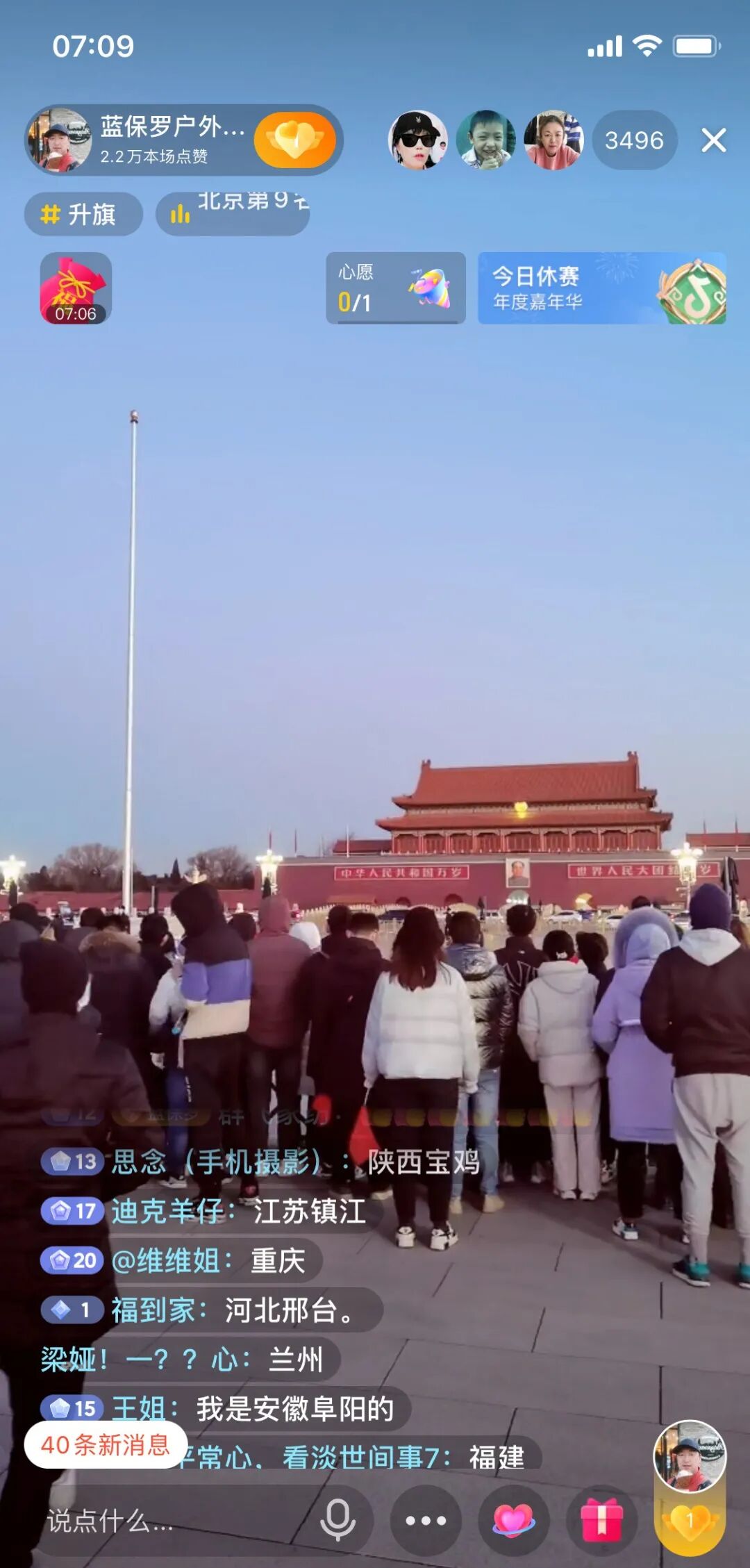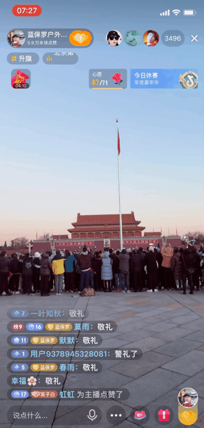 她说自己是个老北京,却几十年没看过升旗,看到保罗的直播,突然就有冲动来了。