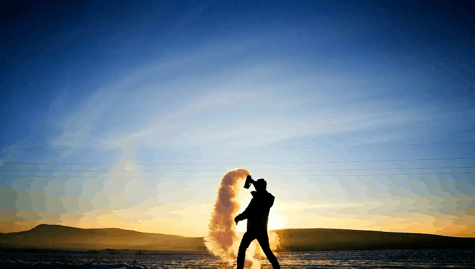 在呼伦贝尔零下几十度的冬日里,他泼出的热水,像雪花一样凝在半空,美极了。
