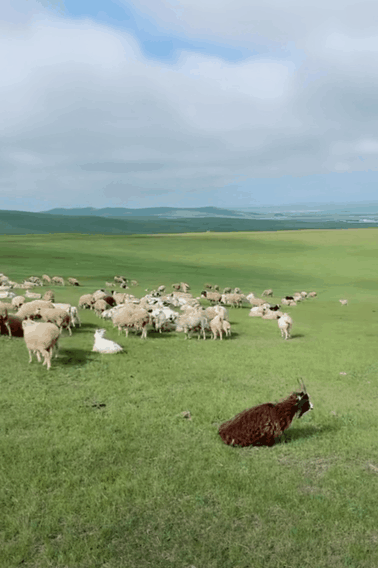 他干脆"下血本",升级了更好的航拍设备,俯拍整个草原,播羊群回家、万马奔腾。