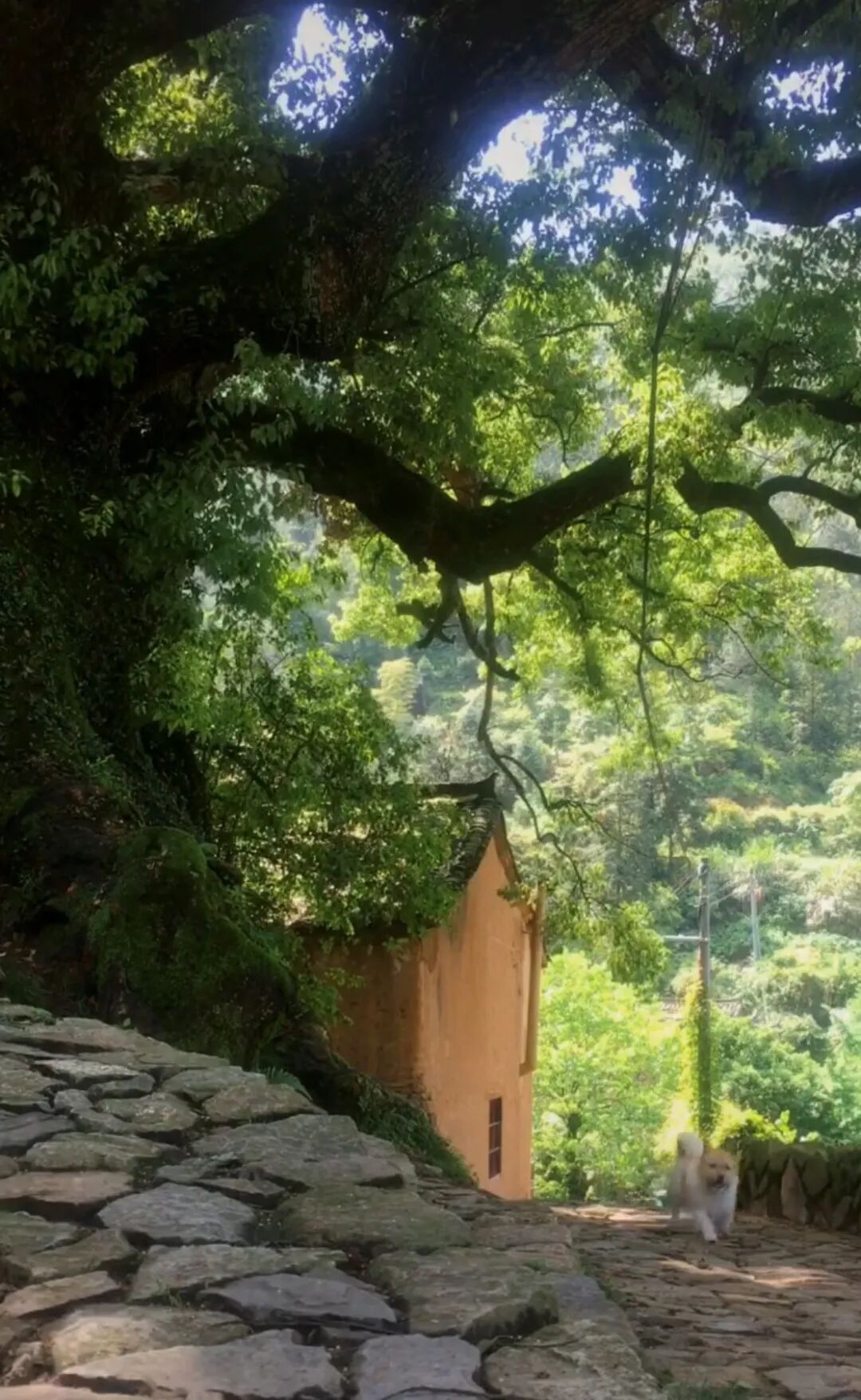 没有人说话,只有一棵大树,清澈的鸟鸣,小狗跑过。