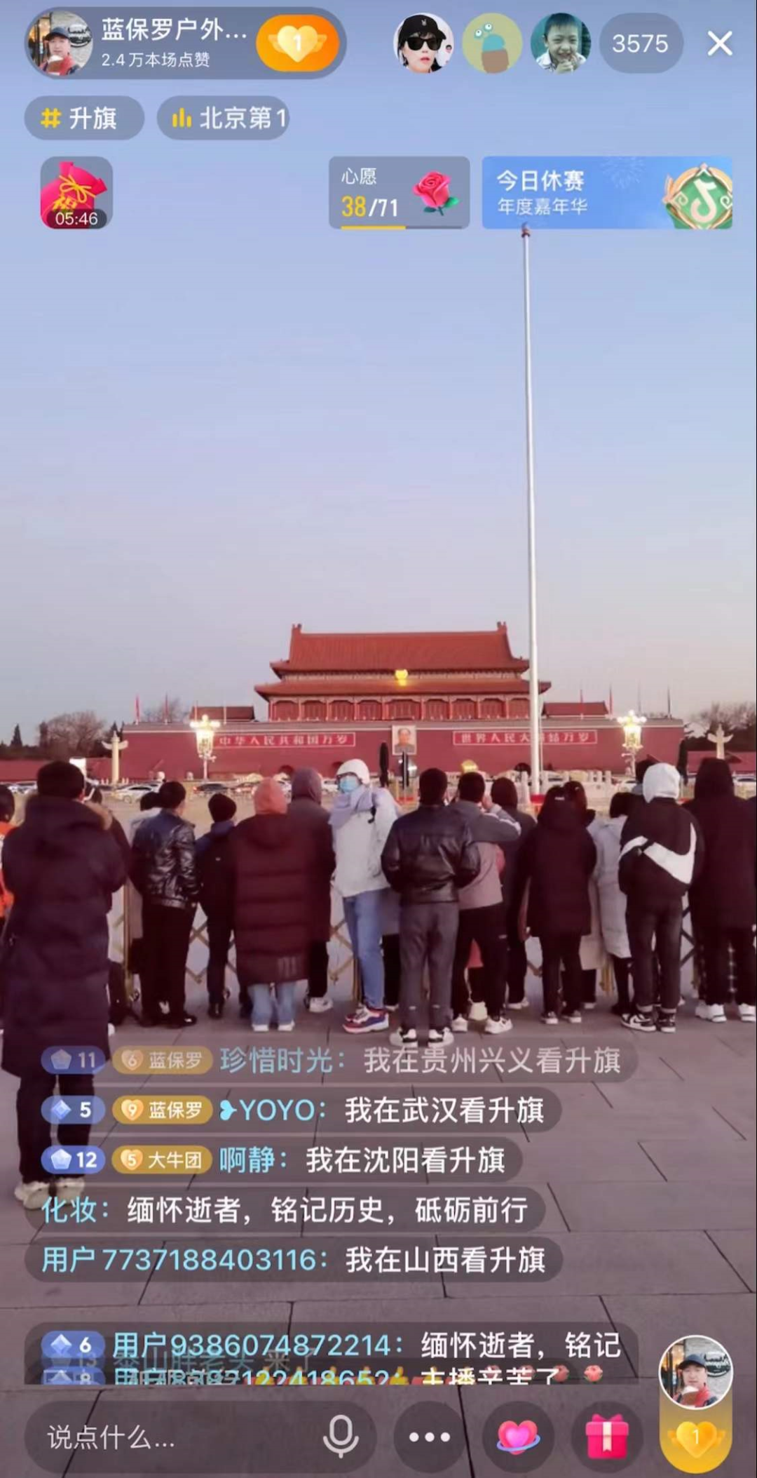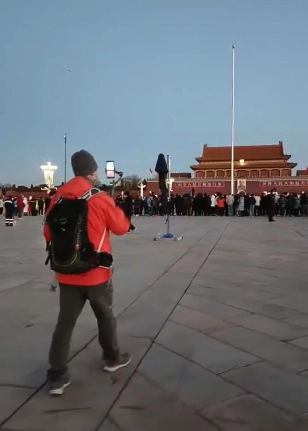 从3月开始,他每天一大早都会去天安门广场,直播升旗仪式。