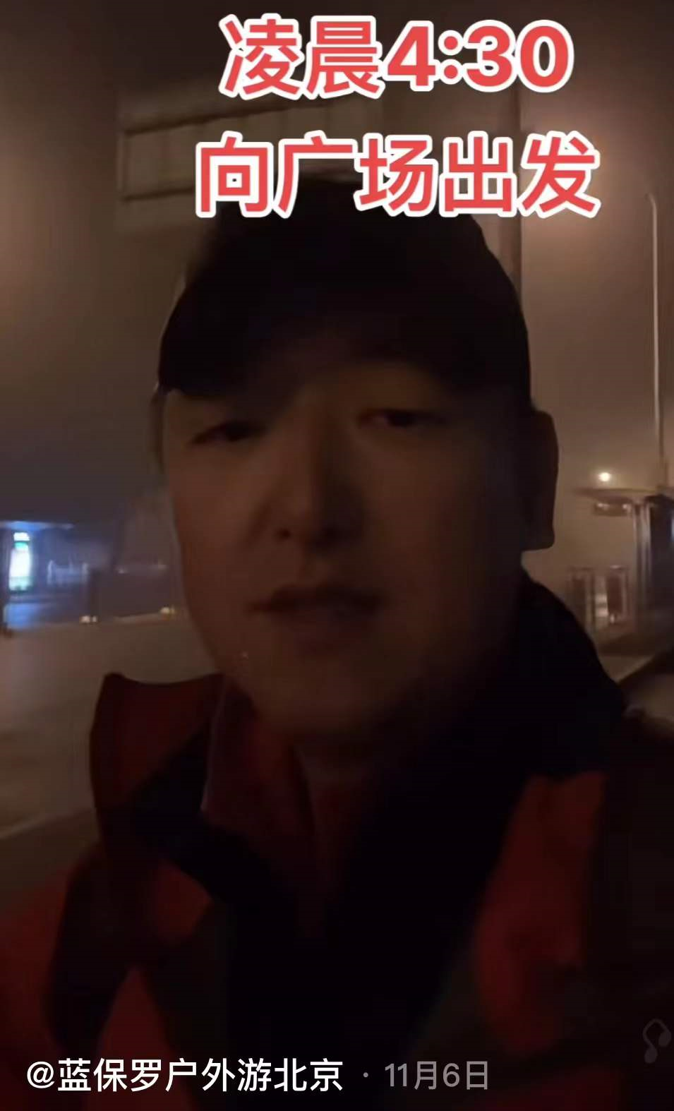 4:30左右升旗,他凌晨1点多就要起床,2点多出门开播。
