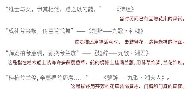 先秦时,当时民间已有互赠花束的风尚。