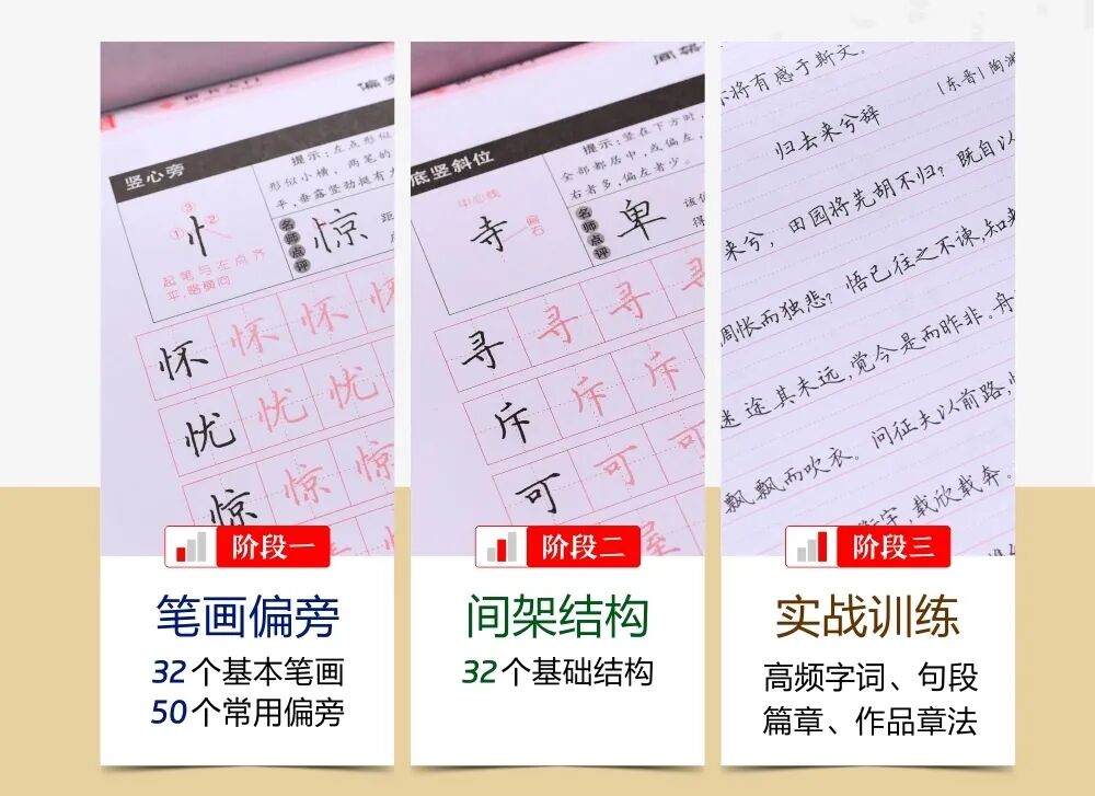 零基础的同学,可以先从笔画练起,再到偏旁,最后到结构练习。