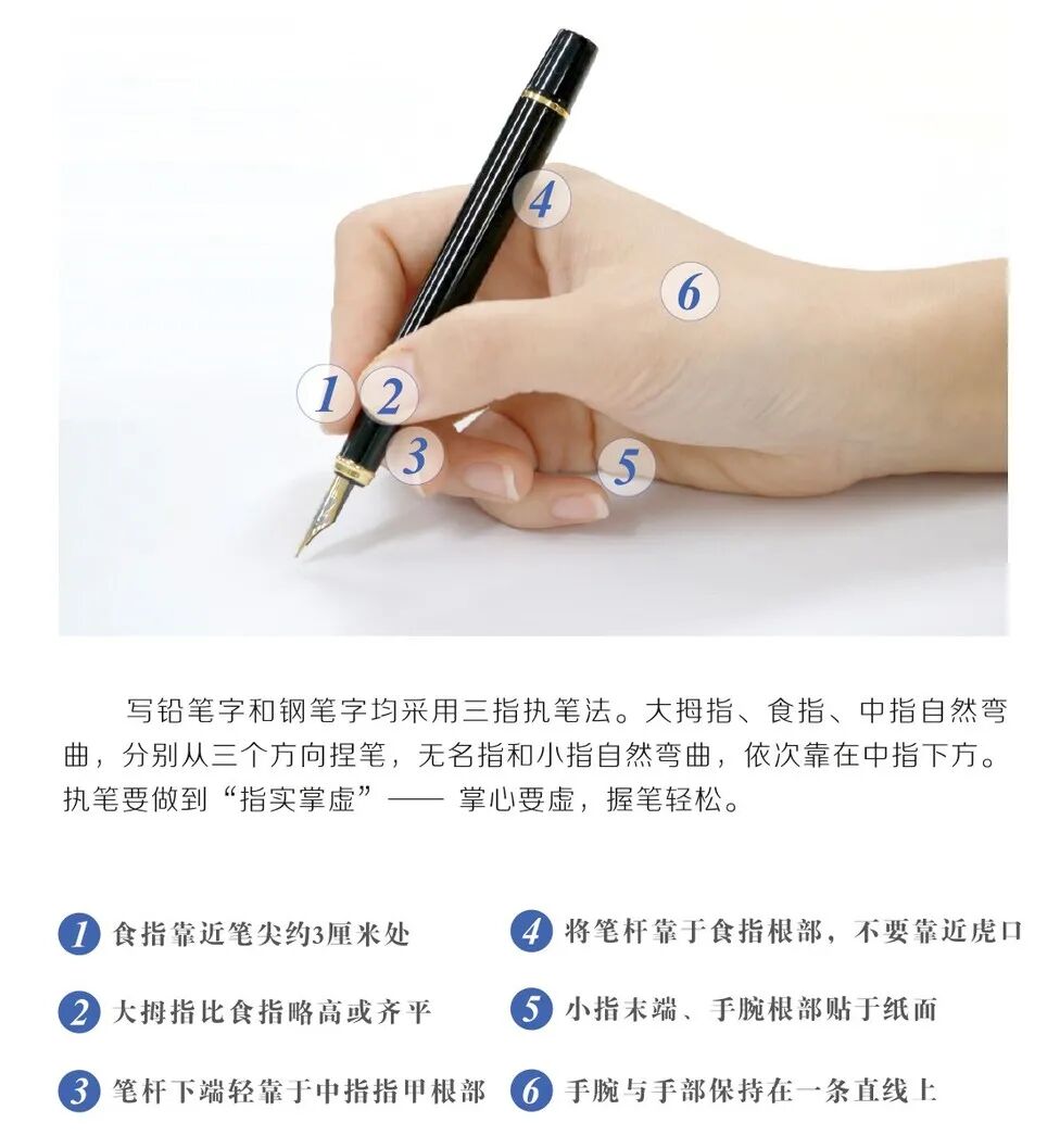 首先,你需要注意自己的坐姿和握笔姿势!好的姿势是练字好的开始。许多同学书写绵软无力、过于用力,或者写久了手很累,或者笔画总是写不到位,这都和你的姿势有关系。