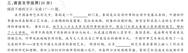 2020年高考全国I卷的语文试卷中,更是直接将“中国印章艺术和篆刻艺术”的内容纳入文字运用题,足足占了20分这么多。