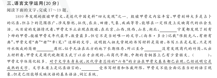 当然,全国II卷同样题型考的是“甲骨文”,所占分值一样为20分。