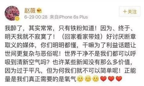 在此言论之下,@赵薇 于6月29日00时28分,发表如下微博。