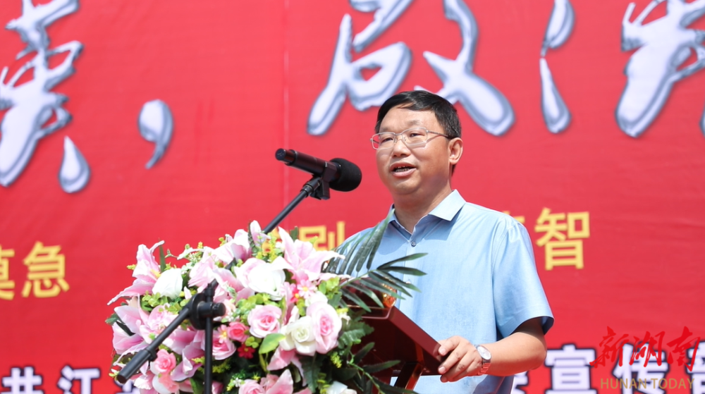江华县人大常委会主任伍继承宣布红色微电影《启汉,启汉》正式开机。