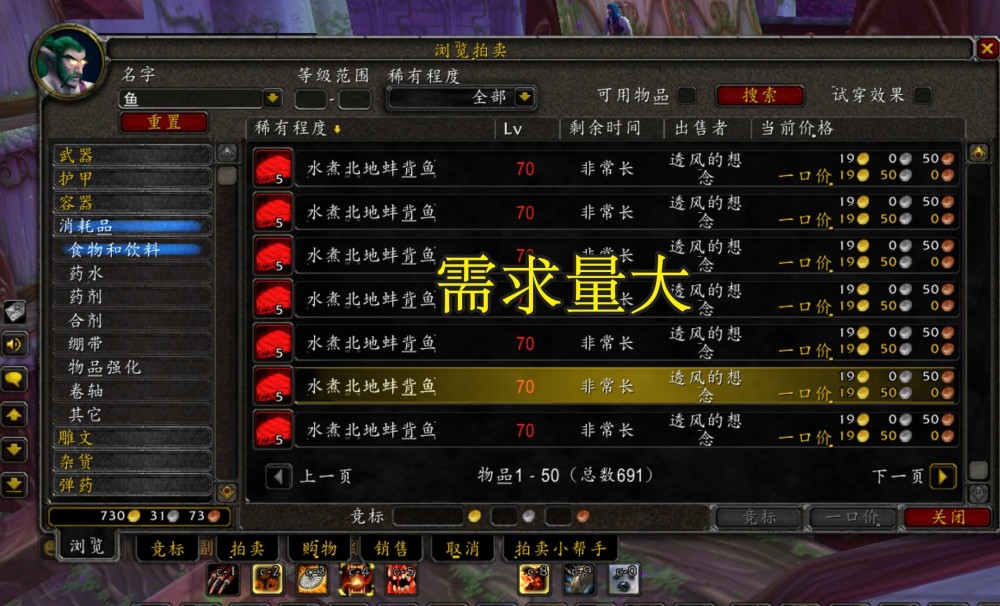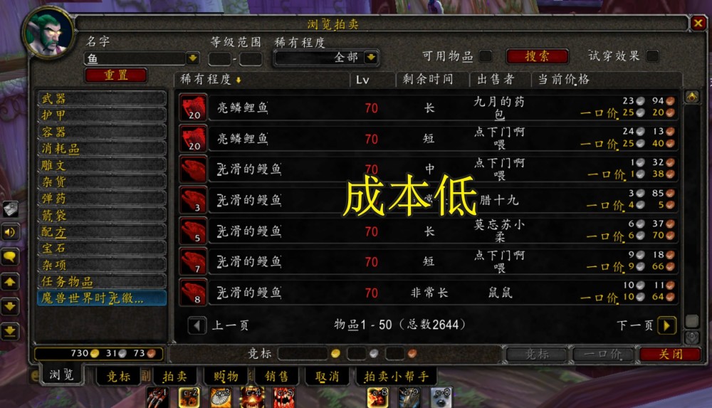 但是随着玩家们的增加,尤其是想依靠钓鱼换坐骑的玩家增加,那么烹饪玩家的成本就降低,毕竟大部分玩家都直接将钓到的鱼低价卖给了拍卖行,而这些烹饪玩家直接进行低价购入,从而可以更好的制作成本更低的食物。另外一个在于烹饪专业可以做出鱼肉筵席的物品,从而给队伍回血和增加输出能力,不过筵席会在下一个版本更加受欢迎。