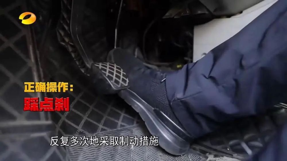 ② 抬起加速踏板并踩下制动踏板,逐渐降低车速,不应紧急制动;