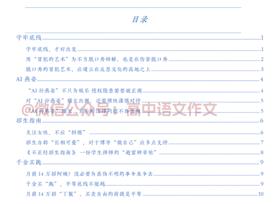 今天作文君给同学们分享的是:高考作文最新热点时评素材 | 脱口秀演员李昊石事件、守牢底线,才好出发、AI孙燕姿...,语文贵在积累与应用,非一日之功,望大家能沉心学习,坚持不懈。