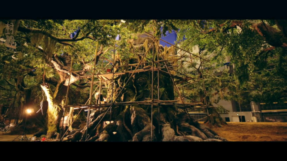 为了拍摄到上古的神秘气氛,剧组更是创造性地在东方影都影视产业园一万平方米的超大摄影棚里重现了墨脱原始森林。场景美术团队不仅要直面每棵树要能动的拍摄需求,更难的是真实还原的问题,因为原始森林细节繁杂,且很难找到规律,于是工作人员把真实的树木的样子翻模拓印下来,局部的苔藓拿回来做培养,以达到导演乌尔善想要的“要有拙朴感,要有原始感”的气质。