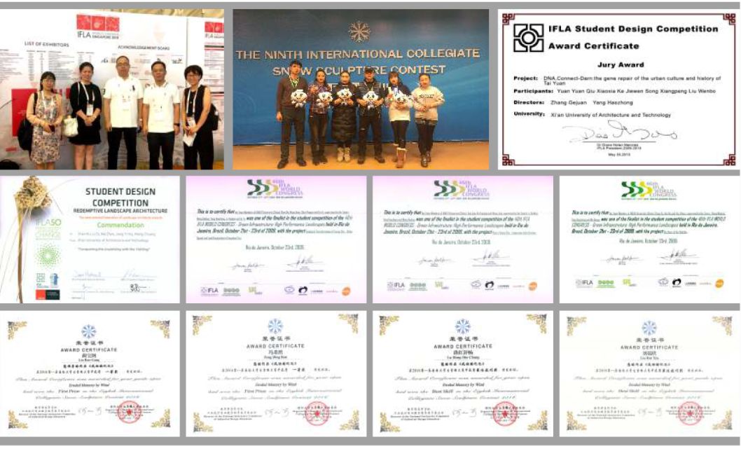 学院学生近年来在国际IFLA大学生设计竞赛、UIA国际大学生建筑设计大赛获奖十余项;在全国大学生艺术展演等国内重大学科竞赛中获奖五十余项。学院近年来承担了国家级基金项目5项,先后完成西安市地铁标识设计及景观墙工程、函谷关《老子》圣像、嘉峪关市、延安市、宝鸡市大型组雕等多项政府重点建设及相关项目百余项,承办国家第二、三、四届国际丝绸之路艺术节国际美术版块及学术高峰论坛,出版、发表了一批高质量的学术著作与论文,受到了同行与社会的好评。为国家各大设计院、大专院校、大型企业及其它领域输送了大批高素质毕业生,已成为我国中西部地区培养高级艺术专业人才的重要基地。