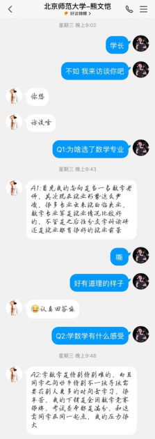 访谈对象:北京师范大学数学专业熊文恺学长(南昌二中校友,姓名、肖像等个人信息已受到其授权公开)