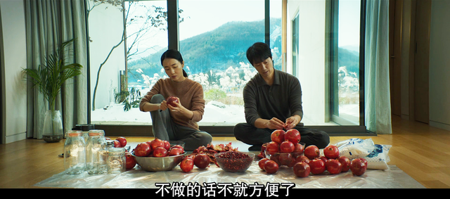 “食色性也”,这句话在韩国文化中也适用,影片中大量采用食物来暗示男女双方的关系。