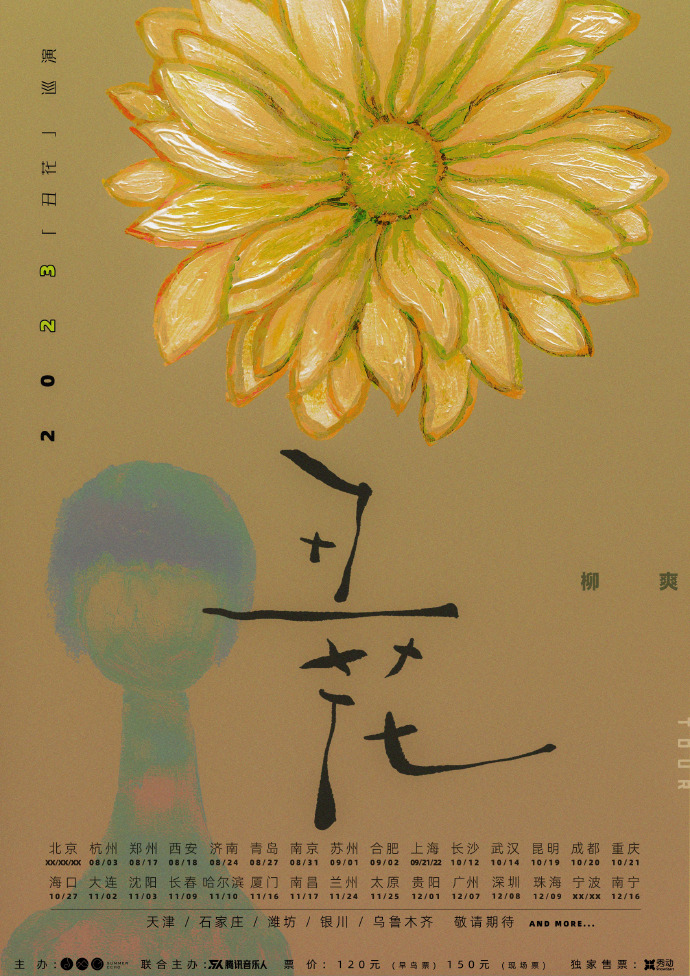 7月18日,柳爽官宣2023年个人第四张专辑《丑花》将开启30余城为期半年的专场巡演。演出分为Daisy/Rose/Somuns三个主题章节。