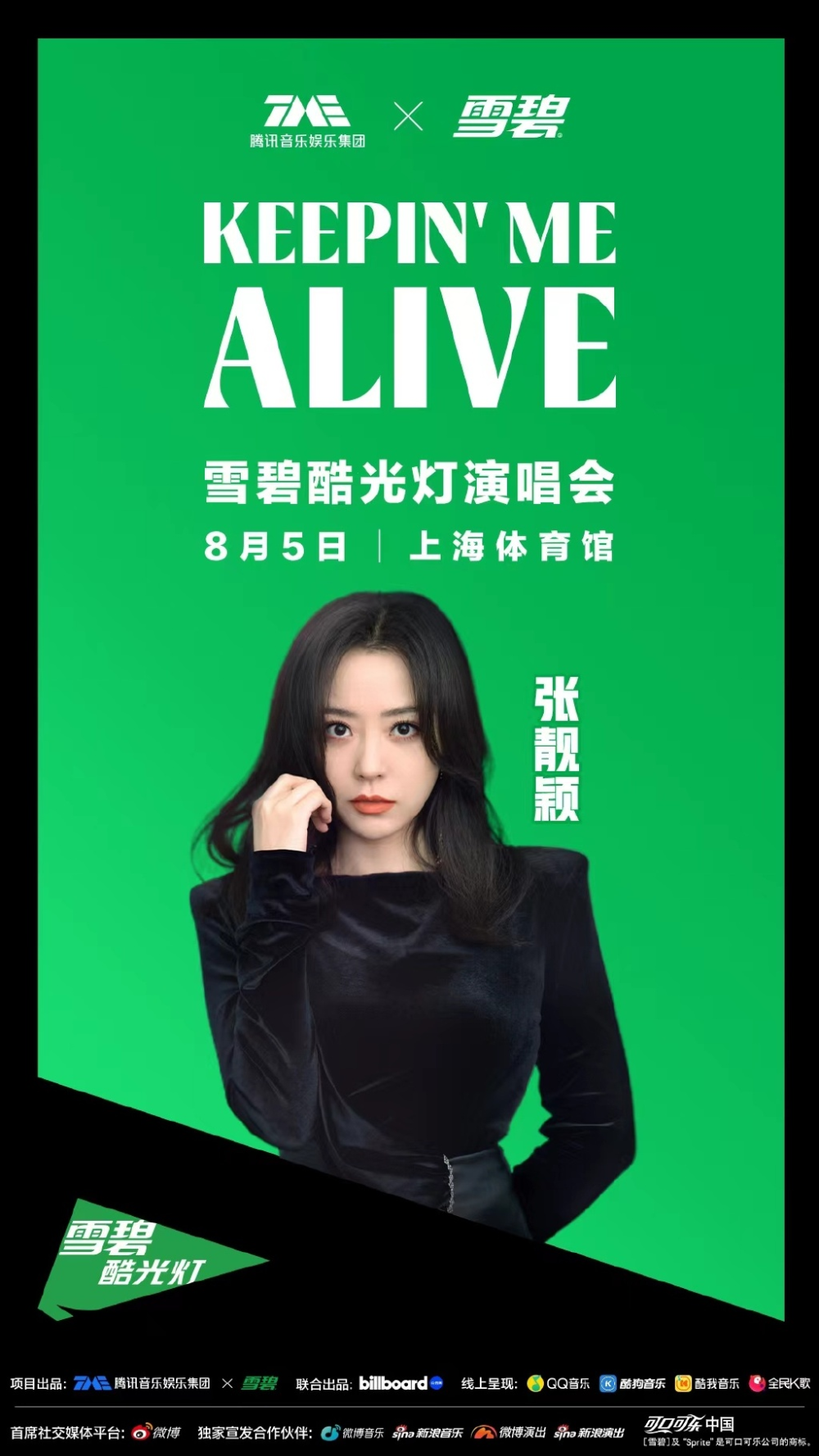 7月18日,TME X【雪碧】联合主办的Keepin me alive 雪碧酷光灯演唱会阵容官宣。张靓颖、刘宇、TIA袁娅维、UNIQ-李汶翰、陈粒、姚琛、韩庚七位音乐人将于8月5日聚集上海体育馆。