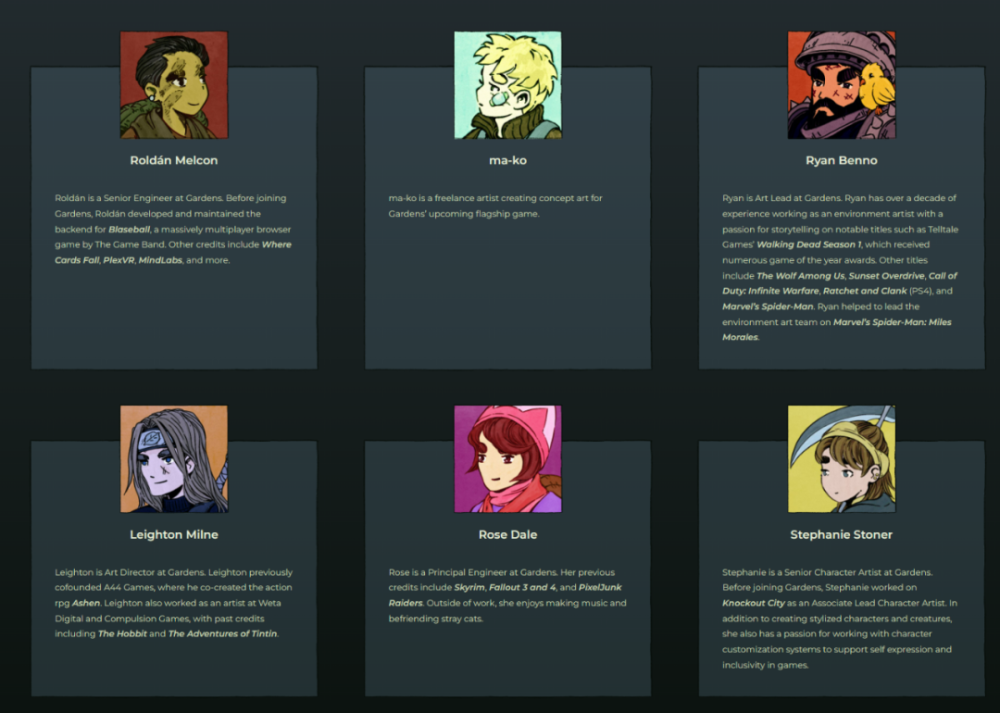 作为一家初创游戏团队,Gardens的几位创始人均有着不错的游戏研发背景,团队又有较强的项目背书,自然能够吸引投资者的关注。