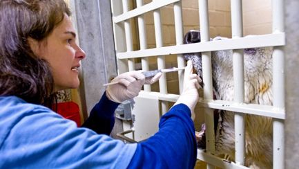 北极熊诺拉出生在美国俄亥俄州动物园的一个混凝土小屋里,她只有松鼠大小,看不到也听不到。她半透明的皮毛几乎遮不住粉红色的皮肤,柔软的爪子划着稻草,鼻子朝着母亲努着。但诺拉必须被饲养员带走抚养,因为母熊亲自抚养的幼崽几乎全部死亡了。