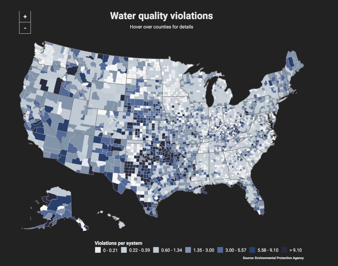 在为期7个月的课程中,学生记者们回顾了68万个环保局的水质和监测违规行为记录。他们发现在过去10年中,美国有多达6300万人多次暴露于潜在的不安全水域中,这个数字几乎占据全国人口的五分之一。