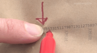 最后,我们再回顾一下小数点后一百万位的π,长长的跑道上铺上了一英里的数值,它如此毫无规律,仿佛包含了世界上一切的数字信息。