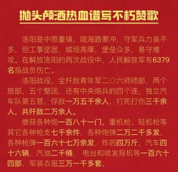 1948年3月上旬,为配合西北野战军作战,并掩护晋冀鲁豫野战军主力休整,华东野战军第3、第8纵队和晋冀鲁豫野战军第4、第9纵队及太岳军区第5军分区部队共28个团的兵力发起洛阳战役。