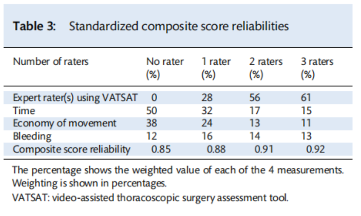 当仅用28%的权重对1名评分者的VATS分数进行加权时,可靠性可达到0.88。