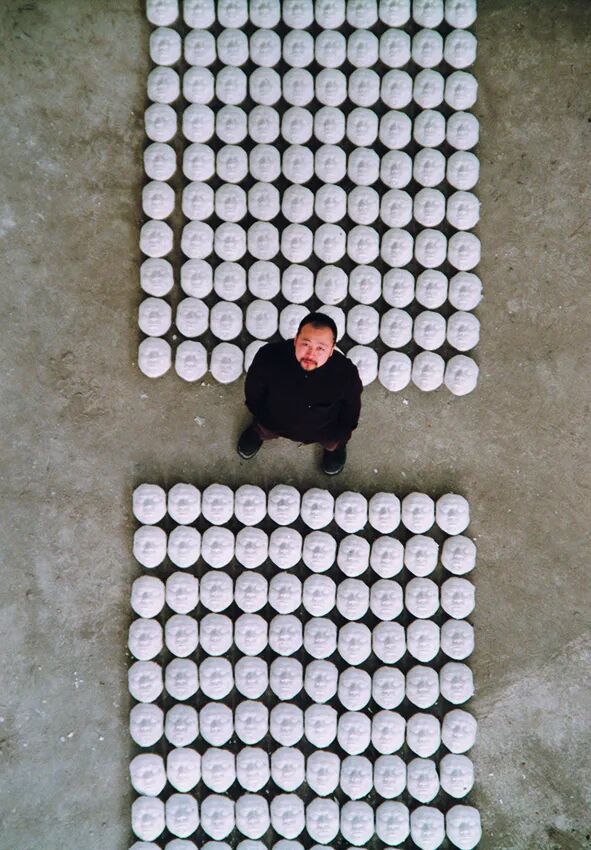 《 为无名山增高一米 》1995-150x120cm (黑白)“ 铁 珺 :《为无名山增高一米》请苍鑫老师聊一下关于这个作品背后的故事,其创作动机,以及表达了什么样的思想?您现在再看这个作品有什么不一样的感觉和评价吗? 苍 鑫 :很荣幸受EAC邀请来聊聊行为艺术。 《为无名山增高一米》是1995年我们十个艺术家共同创作完成,当时我们一起住在北京东村,就是如今北京东三环长城饭店后面。我们都是各大美院毕业的学生,当时处于一种很边缘的状态,不被社会、不被家庭理解。我们就想共同完成一件作品,为了纪念多年并肩战斗的感情,也为了纪念我们当时的一些情怀。 九五年的开春儿三月份,我们在一起喝酒聊天,当时大家出了很多方案,最后找到了北京石景山地区妙峰山,想要人为的增加一些东西。请了专业的中国地质大学的教授,带着专业的测量仪器,测量海拔,再测量每个人的重量,我是重量是排第二个重量,最轻的在上面。当时法新社女记者Robin拍的是彩色的,吕楠拍的是黑白的,法新社的记者发到通讯社,两个月以后,获了世界十大新闻图片奖,轰动国际,当时国内知道的人很少。我们当时的想法还是悲壮的,想用身体改变些东西。当时思想是天人合一,自然跟人之间的关系,把自己的身体摆在自然之中,为山增高一米,很寂静的环境有东方元素,植入年轻身体。我个人认为,它是一个时代的一种状态。当时中国改革开放90年代,整个的国力、经济、社会出现了巨大的变化,人和人之间的关系也变得非常激进、非常潮流,那个状态下产生了雄心壮志的想法。现在看《为无名山增高一米》还是有一些激动,虽然当时也是很偶然的机会参与了这个事件。 铁 珺 :谈到这里,那么行为艺术作品的收藏是以什么方式,你以往的行为艺术作品,这样的图片是多少版数呢? 苍 鑫 :我一般都是大版十个,小版十个,然后有AP版三个,对个作品稍微多一点,这是大中小三个版。《踩脸》北京_数码打印_1994 铁 珺 :1994年,您做了著名的作品《踩脸》,是表达了怎样的情绪,什么观念,您当时是怎么想到创作这样一个作品,当时1994年外界是怎么去看待您这个作品? 苍 鑫 :我因从小的一些经历对人性有一些残疾的看法,就把自己的脸翻下来做成硅胶,每个脸上都有精确的时间年月日分秒,很精致。经过三个月完成1500个脸,铺在地上,请朋友把脸全部踩烂,花了2个月时间。当时是对人性,对肉体的残缺、脆弱、忧郁,包括自己不可把控的情绪的一种表达,这是一种身理的。另外是一种社会的,当时中国的社会是个巨变时期,整个社会都是如火如荼地在改变,人性的不确定,包括资金、资本进入中国,包括很多伦理道德的不确定,所以我对人的脸,这一确切的身份象征有一种疑惑或者质问,所以摆在地上去踩。这些脸是假面,是人性的假面,虚伪的一面。