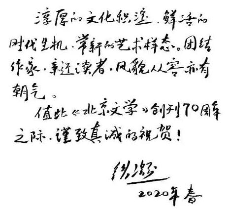 中国作协主席铁凝为《北京文学》题词