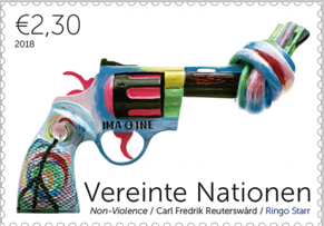 图 5 在联合国总部广场,矗立着雕塑“打结的枪”,象征着“和平、宽容、理解和非暴力”。它是瑞典雕塑家卡尔·弗雷德里克·路特瓦尔德(Carl Fredrik Reutersw.rd, 1934—2016)的作品,1988年由卢森堡赠送给联合国