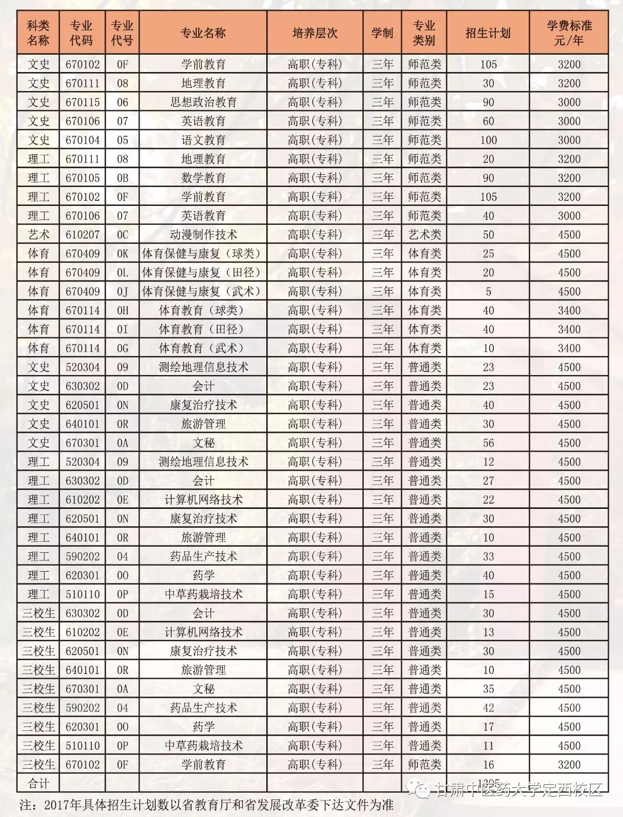 2017年普通高等教育专业招生计划
