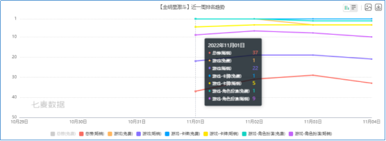 鹰角网络《明日方舟》在11月1日更新3.5周年“2022感谢庆典”限时活动,促使该游戏在iOS畅销游戏榜单上飙升49名,成为本周TOP10榜单内排名变动幅度最大产品。