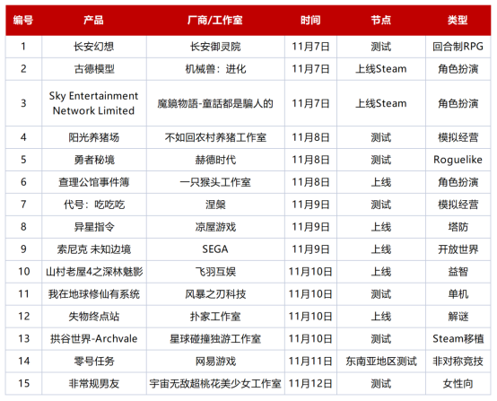 下周(11.06-11.12)新游预告