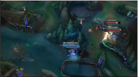 一开始是Deft的女警用大招破掉了Gumayusi的一个锋刃的护盾,然后BeryL直接甩大招逼出了韦鲁斯的闪现。