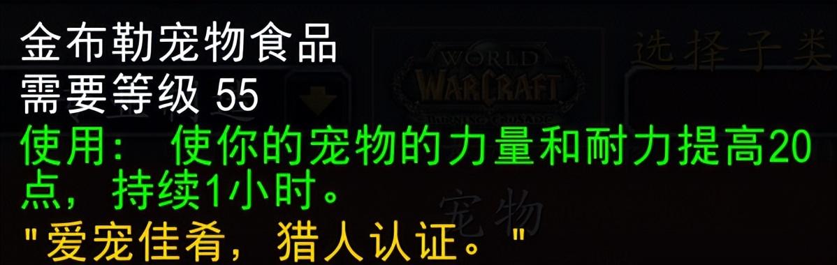 虽然鱼肉筵席并非所有职业的BIS烹饪,但它的价格和普及程度却足以让绝大多数玩家抛去自带烹饪的想法,果然不花钱的才是最香的。不过人物有了烹饪宠物怎么办?在TBC那个兽王猎风光无限的版本,金布勒宠物食品曾风靡一时,除了能提高宠物属性外,利用喂食时产生的高额仇恨来BUG击杀瓦斯琪在那个T5团本坐大牢的时代也拯救了不少便当团。