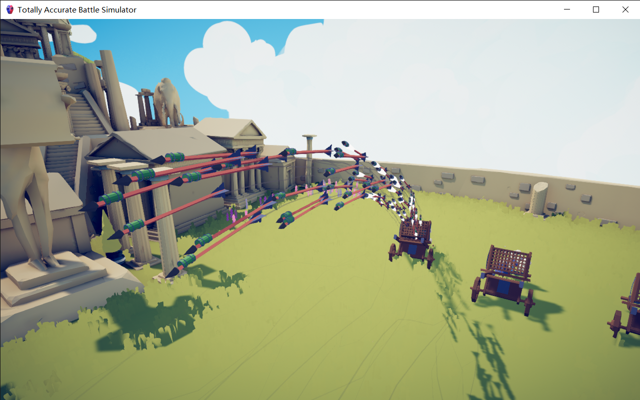 《全面战争模拟器》EA 阶段游戏https://www.zhihu.com/video/1111918332428730368「游戏采用了俯视角,给你十来个弓箭手、一个骑士、一个维京狂战士和五个盾牌手。他们分为两方敌对队伍,你要让他们一决高低,然后静静地围观这个过程。这游戏特搞笑,那些士兵就像一堆破布娃娃,物理系统也很诡异,但这些都不是重点,因为随着战斗的进行,你最大的关注点就是谁会笑到最后……」