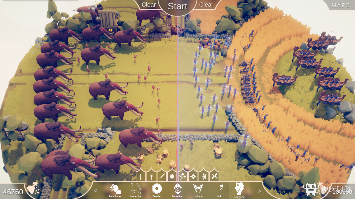 游戏中的兵种比较多,已经出了5个派系,还有3个正在路上。每个兵种也有不同的攻击方式和特性,虽然也有一些兵种相克在里面,像是盾牌兵自然会比不带盾牌的兵种容易防御弓箭手,但是也不要对这个游戏兵种的平衡性和克制关系太过认真(投石车和猛犸象强无敌),毕竟这也不算是一个严谨的策略游戏,开心就完了。