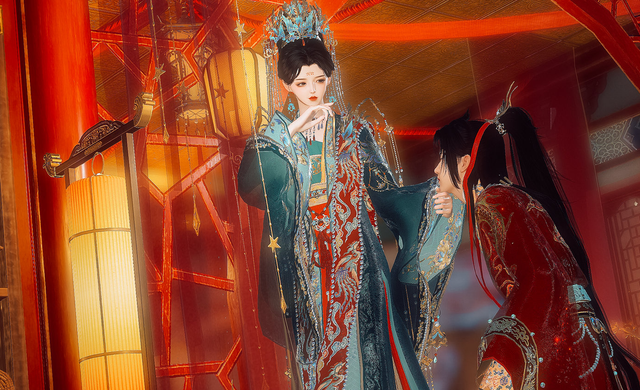 这套时装采用北宋年间的专业婚服造型,以红男绿女为主色调,女款凤冠霞帔一应俱全,珍珠彩线让不少女玩家疯狂,而男装也是细细密密绣着金龙,看起来相当霸气,身穿四周年婚服走在街上,又凭借其独特和珍贵,简直就是出街最亮眼的神器!