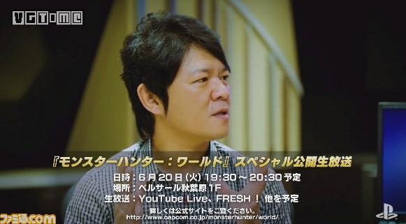 更多《怪物猎人:世界》的情报会在2017年6月20日晚上的6:30~7:30的直播中公布,系列制作人辻本良三也会登场。
