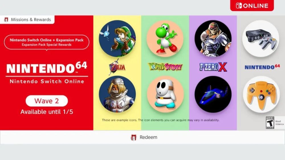 任天堂推出N64系列第二波白金点数兑换头像,1月5日截止。点击桌面的“Nintendo Switch Online”图标即可前往兑换(需要会员)。