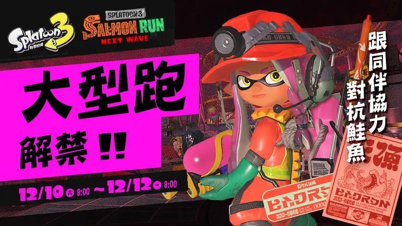 港任公开《斯普拉遁3》大型跑相关资讯。首次“大型跑”将于12月10日早8:00~12日早8:00在醋饭海洋世界发生。