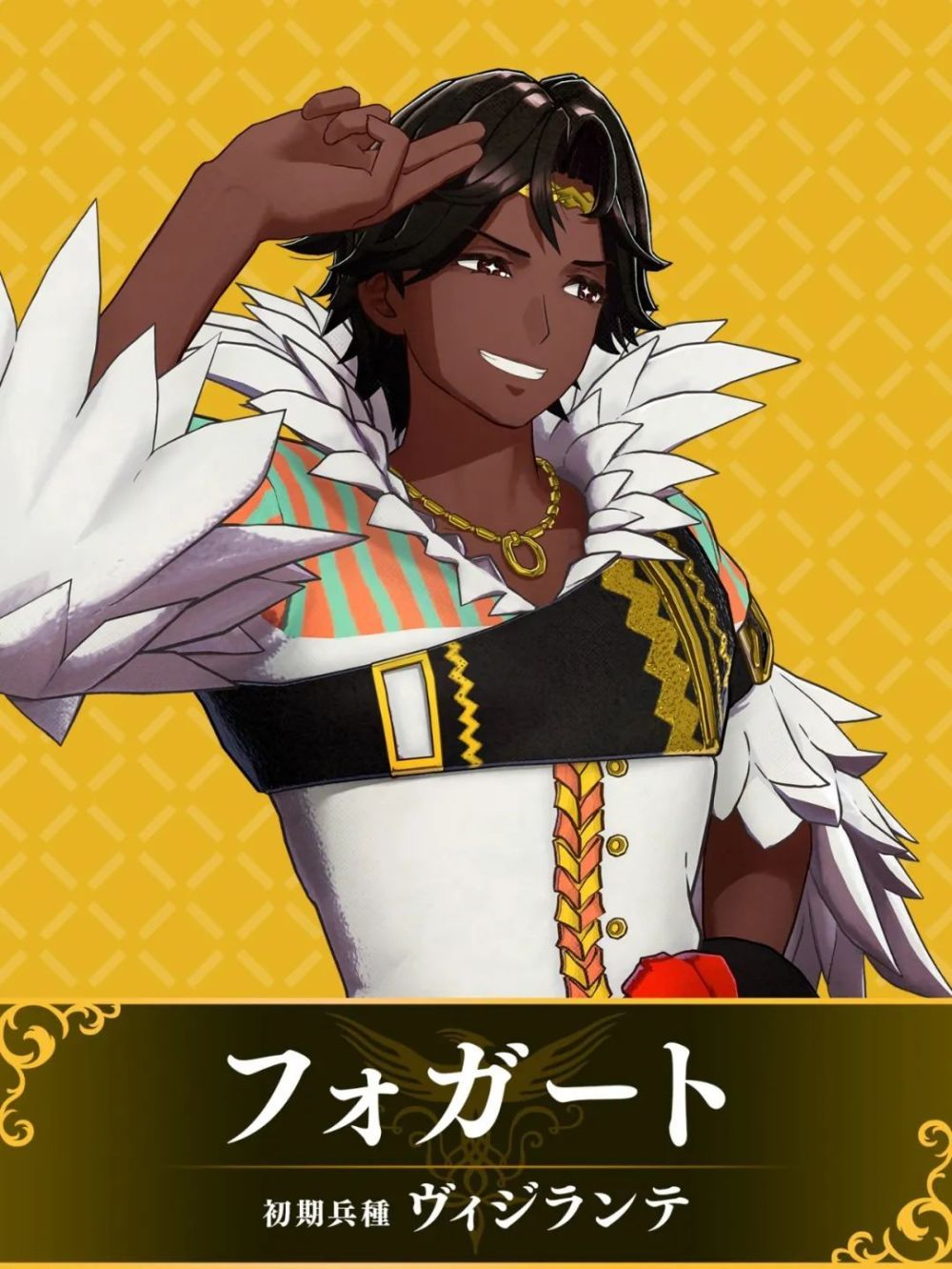 フォガート是“ソルム王国”的第一王子,ミスティラ的弟弟。由于这个国家是女王制,因此相比于姐姐,他的成长过程要更自由,性格乐观大方,他似乎正在为了保护人民而奔走于全国。他的初始兵种与姐姐一样都是治安队员,能够骑马并使用弓箭。