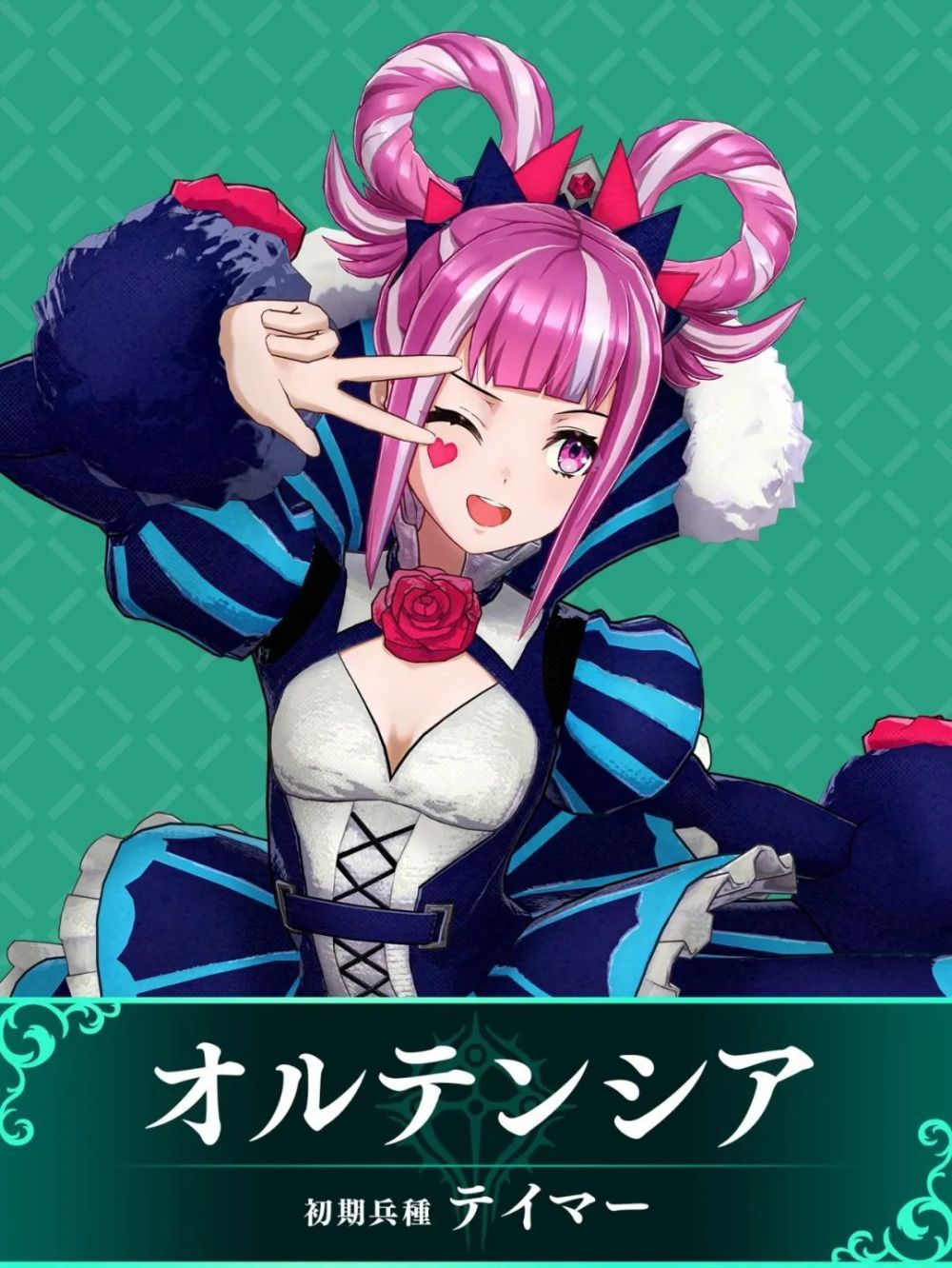 オルテンシア是“イルシオン王国”的第二公主,アイビー的妹妹。性格天真无邪又有些任性,对亲人感情深厚。由于父亲的命令出现在主角面前,企图夺走纹章士的戒指。初始兵种与姐姐一样是驯兽师,乘坐飞马,使用魔法和法杖攻击敌人。