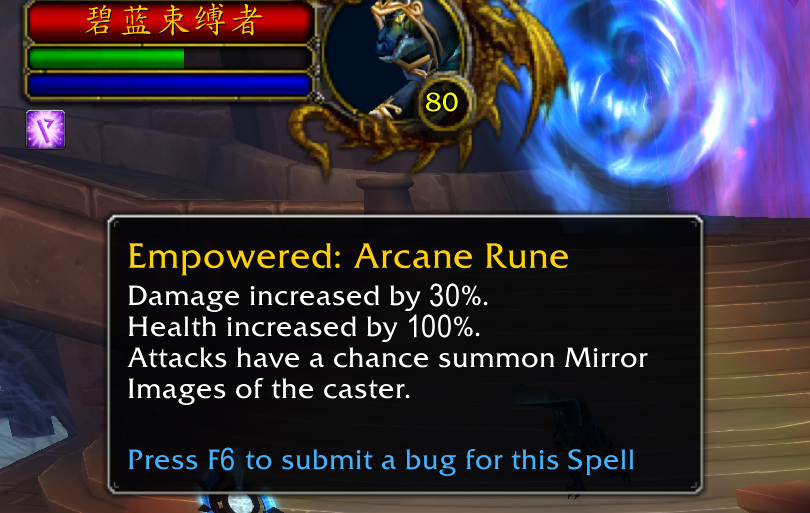 强化符文包含3个BUFF,伤害提升、生命值提升以及一个类似正式服大秘境词缀的额外效果,不过与大秘境词缀每周变化不同,WLK怀旧服每个地下城都有一套特定的符文,与该地下城主题相关,例如艾卓尼鲁布的符文效果是攻击有机会对玩家进行蛛网缠绕,乌特加德城堡符文效果是攻击有机会冰冻玩家,净化斯坦索姆符文效果是攻击有机会让玩家感染瘟疫变僵尸。