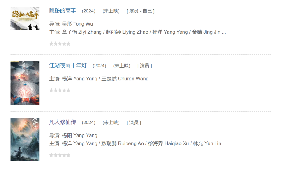 而没塌房的像鹿晗、李现等都非常低调,现在很少有作品输出,唯独杨洋还是很能打,除了每年都有剧集输出,手上待播的影视剧还有近10部。