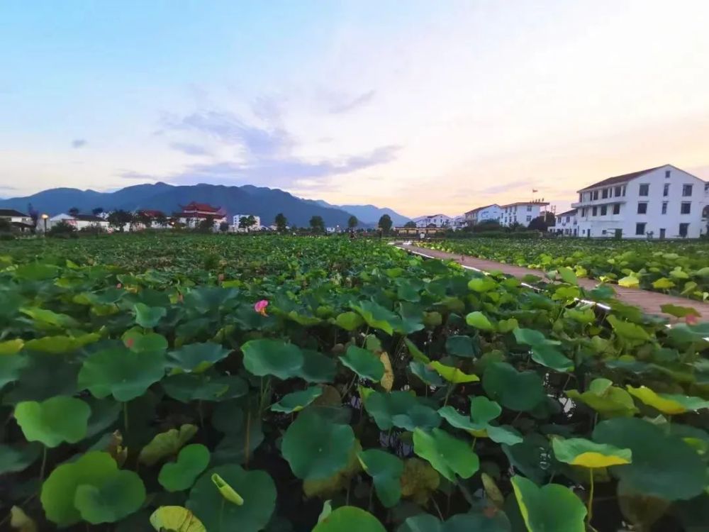 走进灵溪镇桃湖村,徐俨夫状元墓山脚下,池塘与农田相连,碧绿的荷叶铺满池塘,层层叠叠的荷叶间,荷花璀璨盛开。