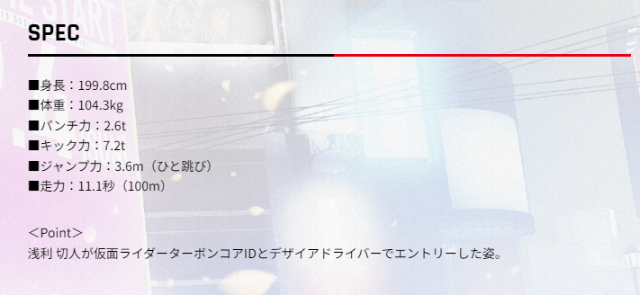 然后是这次的蝙蝠骑士,也就是绑架祢音的那个恶人,数据拳力是1.5吨,踢力3.8吨,跳跃力6.8米,速度9.6秒/100米,体术方面的拳脚数据完全不够看,纯粹的渣渣,但是敏捷能力感觉还算是不错。